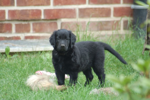 Pretty 6 month old baby, lovely nice coat in good condition, sweet feminin head, dark eye, soft expression, good angulation front and rear, level topline, moved very well.