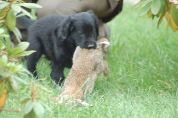 Gut 6 Monate alte Hündin. Sehr frohes Baby. Gutes Rassebild, sehr feminin. Korrekte Schädellinie, Ohren, Scherengebiss. Langer Hals, Rücken muss noch fester werden. In der Hinterhand stärker gewinkelt als vorne, etwas dünne lange Pfoten. Noch sehr verspielt in der Bewegung. Bewegung mit hoher Vorhandaktion.