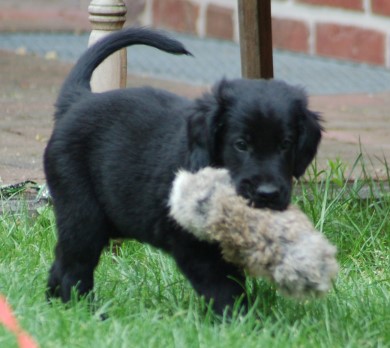 Beautiful 6 month puppy, exellent head, lovely dark eye, cleen neck, goog shoulderplacement, good front and rar angulation, happy boy on move but still unsettled but that will come.