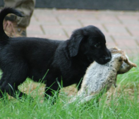 6 Monate alt, gutes Rassebild, sehr hamonisch, gute Größe, angenehmer Kopf, korrekte Ohren. Scherengebiss, gute Hals- Rückenlinie, guter Rutenansatz und Rute sehr gut getragen. In der Hinterhand etwas stark gewinkelt, Vorhand korrekt. Hat etwas flache und lange Pfoten. In der Bewegung gut.