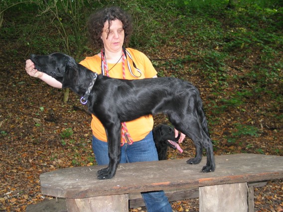 9 mon. alter noch sehr welpenhafter Rüde, der aber in einem sehr guten Format und sehr guter Größe ist, sehr schöne Hals- und Rückenlinie, kor. Kopf sehr gut gew. noch etwas seichte Br. Pfoten sollten noch besser sein, kor aber noch sehr jungel. Bewegung, sicheres Wesen